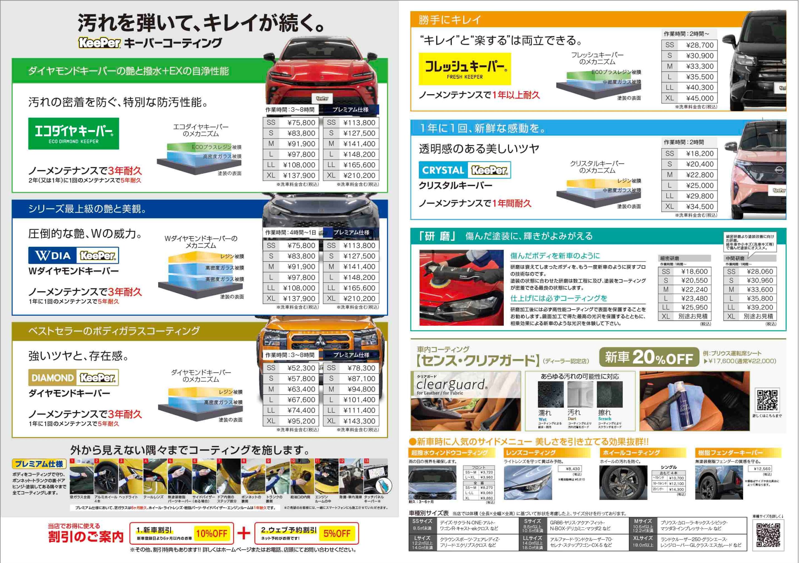 福岡県では数少ないKeePer商品を取り扱う専門店。その特長は充実したメニューに加え(安価な商品から高額商品まで)オーナー様の使用目的やご要望にお応えすることを得意としています。
